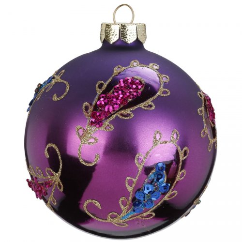 Boule de noel violet. Service client 04 50 65 10 12. Description Boule de Noël violette 8cm Cette boule de noël violette et blanche à été soufflé par nos artistes verriers en magasin. Caractéristiques Boule de Noël violette 8cm 8 cm de diamètre.